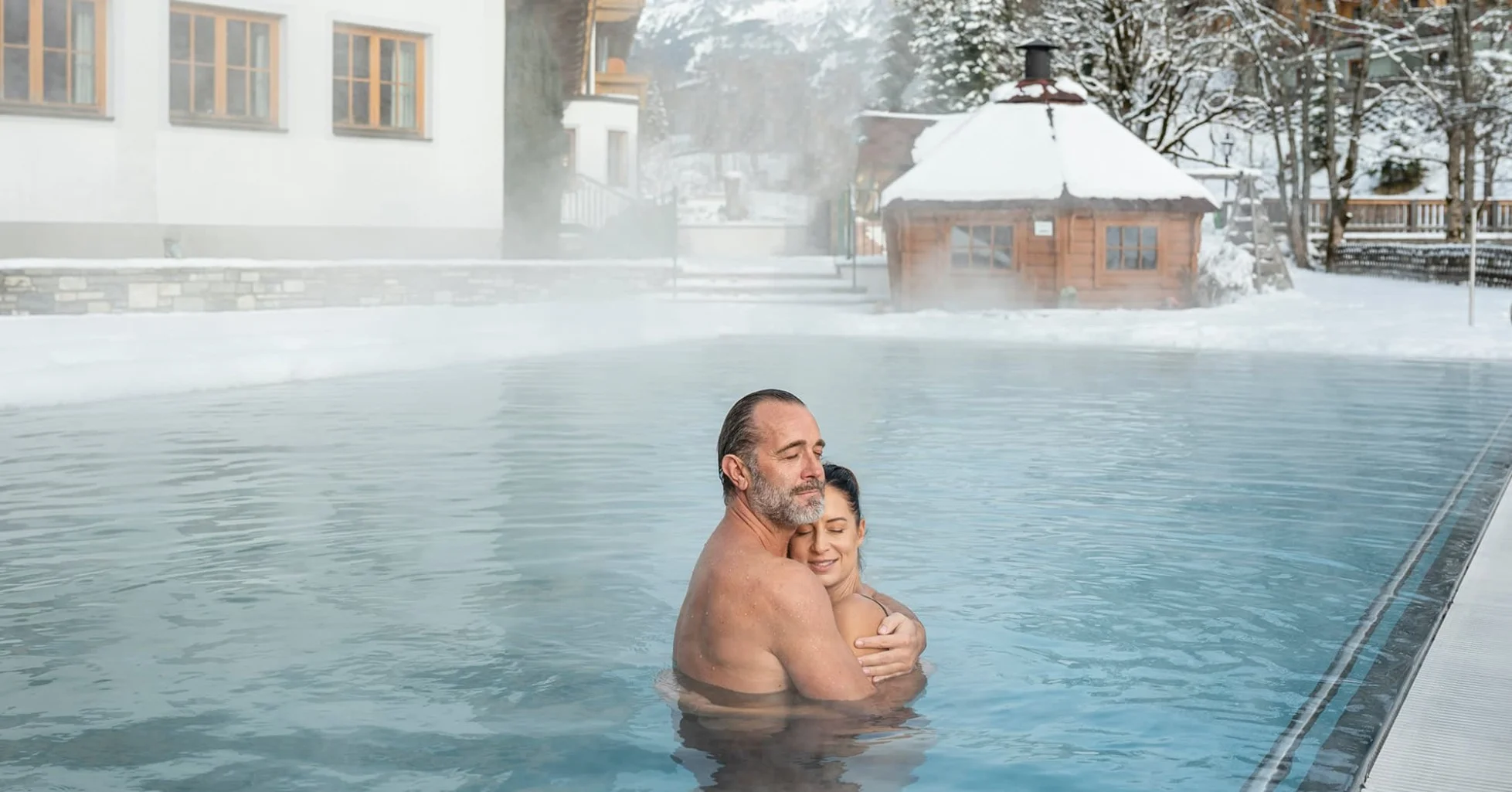 Mit traumhaftem Blick auf die umliegende Bergwelt kannst du im warmen Wasser entspannen, während im Winter der Schnee glitzert und im Sommer die Sonne lacht. ☀️